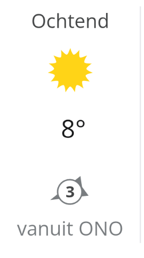 Vandaag weer stralend fietsweer. Natuurlijk is het ‘s-ochtends nog vrij fris; 8°C, maar het is onbewolkt met een wind uit het noordoosten kracht 3.