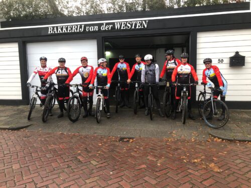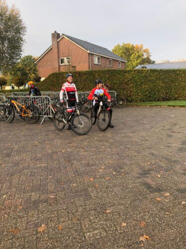 Bij het gemeentehuis stonden echter toch nog 2 sporters (Gerben en John) en 2 gastrijders te wachten. 1 van de gastrijders was Kenzo, de zoon van Gerben en de andere gastrijder was Marc de Peijper, een oud-lid die sinds kort zijn fiets weer van de wilgen gehaald heeft.