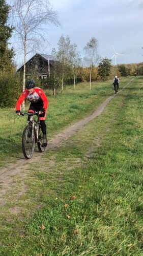 Dat kon natuurlijk niet en de snelheid werd opgevoerd waardoor de mtb’er al snel kraakte.